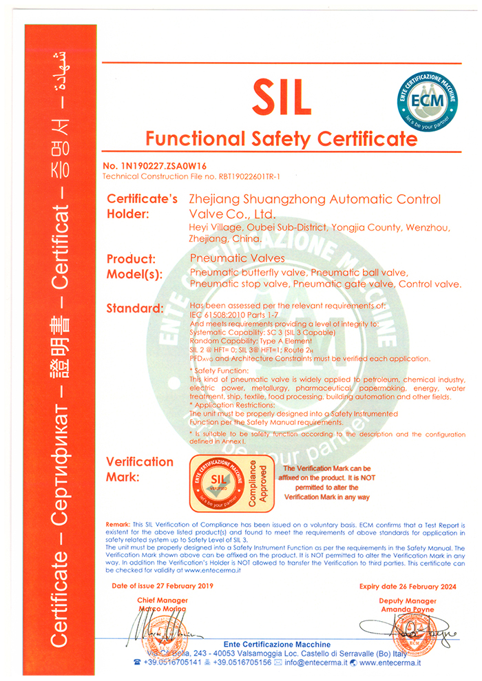 產品中心 企業榮譽>> SIL認證證書正本 返回首頁