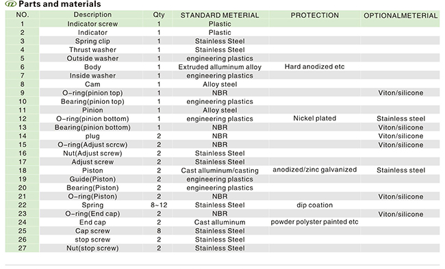 SAT系列氣動(dòng)執(zhí)行器以SR系列氣動(dòng)執(zhí)行機(jī)構(gòu)為例在彈簧復(fù)位的應(yīng)用中,輸出力矩是在兩個(gè)不同的操作過程中所得,根據(jù)行程位置,每一次操作產(chǎn)生兩個(gè)不同的力矩值。彈簧復(fù)位執(zhí)行機(jī)構(gòu)的輸出力矩由力(空氣壓力或彈簧作用力)乘上力臂所得第一種狀況:輸出力矩是由空氣壓力進(jìn)入中腔壓縮彈簧后所得,稱為"空氣行程輸出力矩"在這種情況下,氣源壓力迫使活塞從0度轉(zhuǎn)向90度位置,由于彈簧壓縮產(chǎn)生反作用力,力矩從起點(diǎn)時(shí)最大值逐漸遞減直至到第二種狀況:輸出力矩是當(dāng)中腔失氣時(shí)彈簧恢復(fù)力作用在活塞上所得,稱為"彈簧行程輸出力矩"在這種情況下,由于彈簧的伸長(zhǎng),輸出力矩從90度逐漸遞減直0度如以上所述,單作用執(zhí)行機(jī)構(gòu)是根據(jù)在兩種狀況下產(chǎn)生一個(gè)平衡力矩的基礎(chǔ)上設(shè)計(jì)而成的。如圖11所示。在每種情況下,通過改變每邊彈簧數(shù)量和氣源壓力的關(guān)系(如每邊2根彈簧和5.5巴氣源或反之),有可能獲得不平衡力矩 在彈簧復(fù)位應(yīng)用中可獲得兩種狀況:失氣開啟或失氣關(guān)閉。在正常工作條件下,彈簧復(fù)位執(zhí)行機(jī)構(gòu)的推薦安全系數(shù)為25-50%